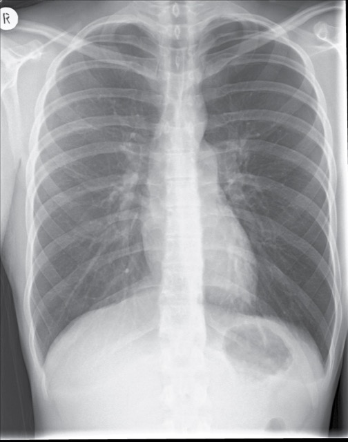 Widened mediastinum — 45-year-old with tearing chest pain